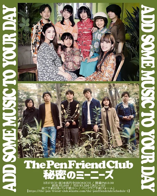 先述したようにmayugenさんの声に私は50~60'sのスタンダード・ポップスみを感じるので、女性ボーカリストフィーチュア視点でも今回の対バンピッタリだなと元々思ってたんだけど、mayugenさんを送り出す卒業ライブとしても、あらためてふさわしい場だったかもしれないなって。秘密のミーニーズ&The Pen Friend Club、両バンドのみなさん、素敵なライブありがとうございました!